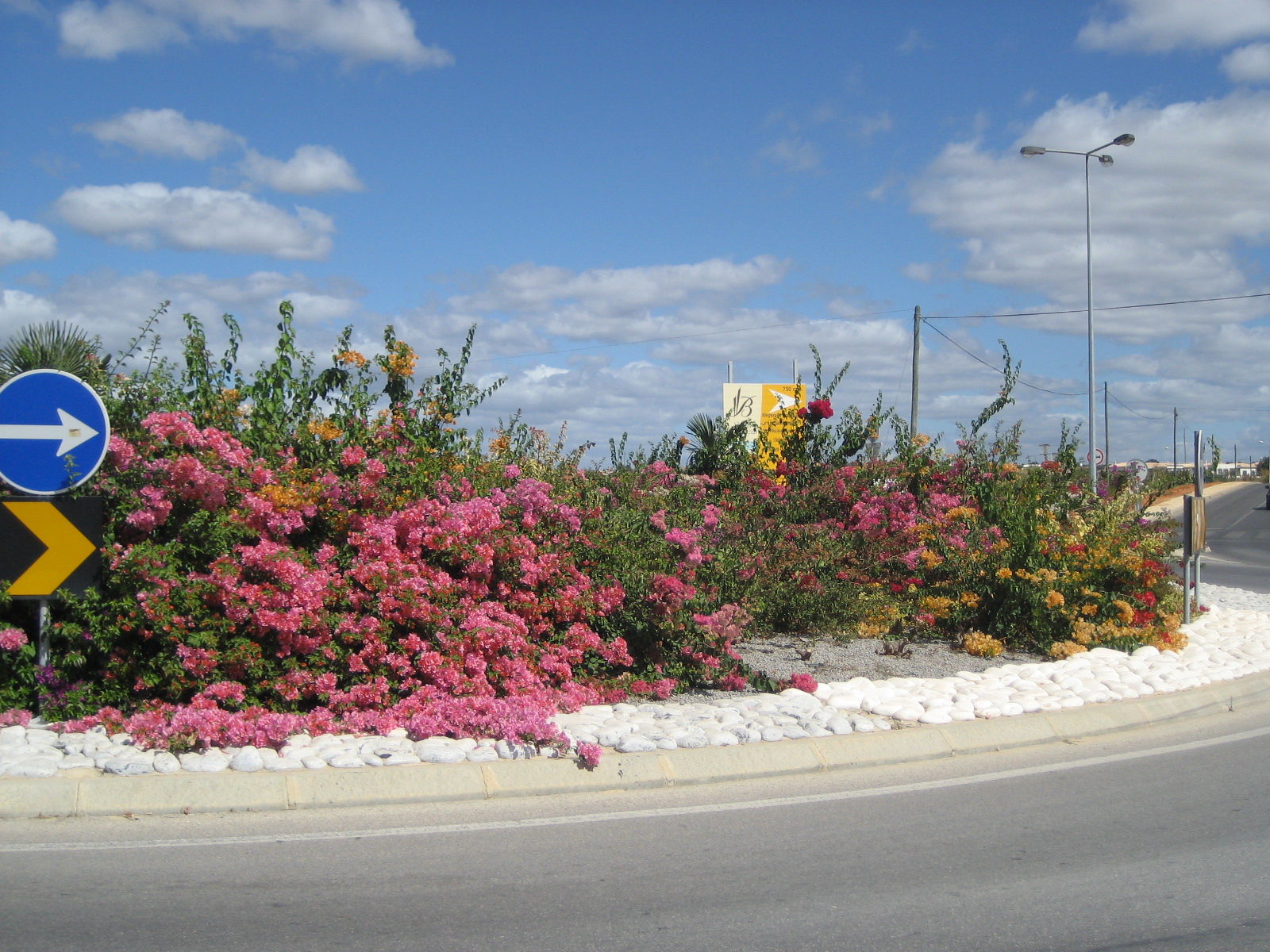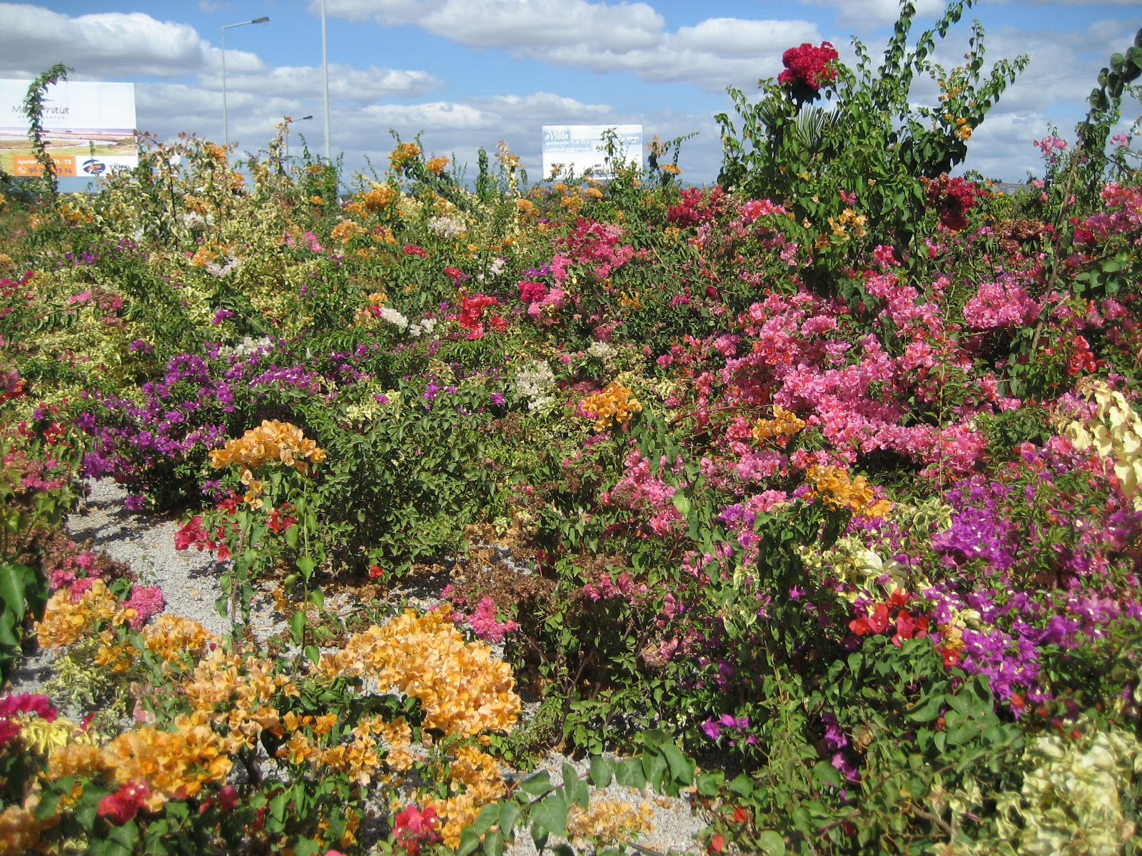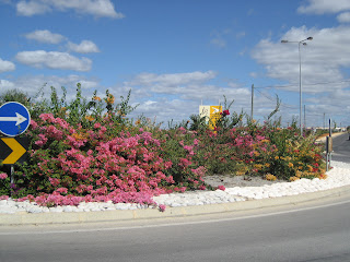 Estas são imagens obtidas em Pêra (Algarve), numa rotunda, em que a planta seleccionada é a Buganvília; neste caso, combinaram provavelmente todas as variedades conhecidas! Sempre que passo nesta rotunda, apetece repetir a volta uma e outra vez... e já o fiz...