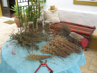 Todos os anos, após um Verão longo e quente como foi o deste ano, há sempre a necessidade de fazer uma limpeza geral do jardim. Ao fazê-lo, aproveito para secar algumas ervas aromáticas, destinadas a chá e também para decorar algumas partes da casa, aproveitando os seus aromas. Este jardim tem muita alfazema, tomilhos e poejo, entre outras.