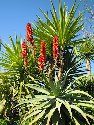 Os meus jardins são bons hospitais para as muitas plantas que, ao longo dos últimos anos, tenho encontrado no meu caminho. Na verdade, é muito fácil criar um espaço verde "gratuito" (palavra mágica nos dias que correm) bastando para isso prestar alguma atenção ao que é deitado fora depois de uma limpeza feita a um jardim. Foi o caso dos 2 aloés que hoje apresento. Esta manhã lá estavam eles à minha espera... Foram, depois, plantados no jardim da Tina e o local da plantação teve em conta a floração, que normalmente acontece em Janeiro, e as várias perspectivas dessa floração a partir da casa. E, mais uma vez, é graças ao clima fantástico que o Algarve tem que permite este tipo de plantação, dado que quase todas as plantas pegam de estaca, e este jardim é um bom exemplo disso. A comprová-lo está a última fotografia, que mostra algumas das plantas recuperadas do lixo há cerca de um ano. E é destes e de outros prazeres que tento viver o meu dia a dia...