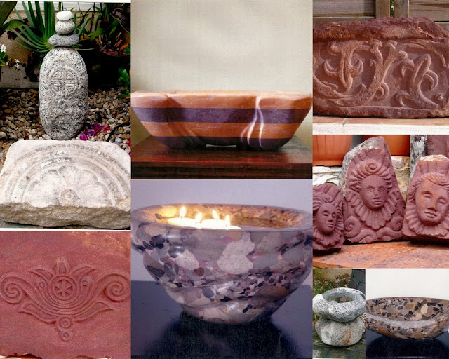 Aqui estão alguns dos meus trabalhos esculpidos em pedra, que servem para complementar a fantasia que tento sempre criar nos espaços verdes que executo. É com orgulho que os faço, dado que, em escultura, sou auto-didacta, herdeiro de uma tradição familiar no trabalho da pedra. por vezes, dou comigo a reproduzir fragmentos de frisos ou outros temas arqueológicos, dado que, sendo amante de arqueologia, acho que os originais devem ser expostos em museus, objecto de estudo e não apenas de observação para alguns poucos. Estes pormenores servem também para atrair ainda mais a atenção dos olhares para as pedras que, sem eles, poderiam passar despercebidas ou ter leituras lineares. É um excelente alimentador da curiosidade de quem visita os meus espaços, e só por isso já valeu a pena tê-lo feito. Para além disso, é comum suscitarem a dúvida sobre se serão originais antigos ou acrescentos meus...